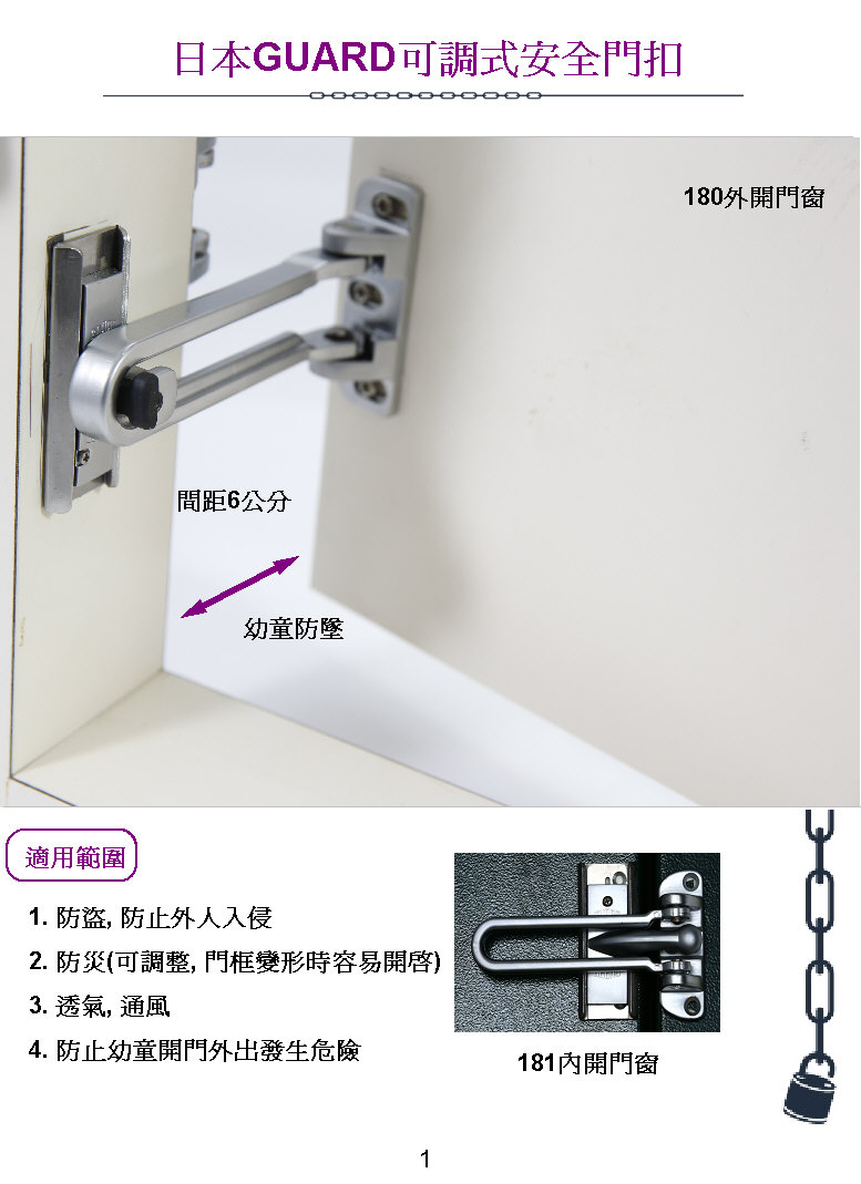 日本GUARD可調安全門扣 180(外開門) 專利