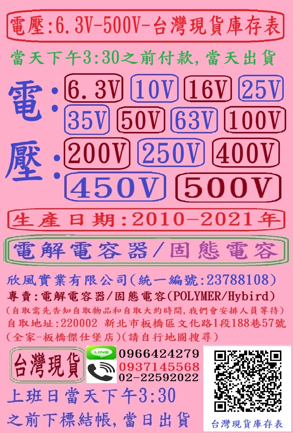 欣風實業有限公司(電容小站) 專賣: 電解電容器/固態電容(POLYMER/Hybird)
