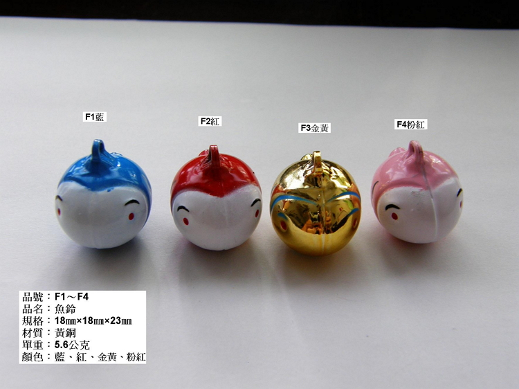 福鈴有限公司專門從事個性造型鈴鐺開發,開發出多檔新產品「水滴鈴」、「心鈴」、「魚鈴」、「貓鈴」、「羊鈴」、「狗鈴」,此類產品乃新開發創新之設計,有別於市場上傳統鈴鐺(造型單一,表面塗裝只一色,屬低檔產品),本系列產品具造型特色,外型配色鮮艷亮麗且俏皮卡通化,很適合新時代消費趨勢,滿足消費者個性化需求,敝廠其他可愛個性造型鈴鐺正陸續開發中。 目前產品對消費者的函義: 水滴鈴→真珠漆金、銀、紅、藍、綠、紫、粉紅共7色,搭配施華洛世奇(SWAROVSKI) 頂級水晶鑽,光彩耀眼,是精緻飾品最佳代言人。 心鈴→顏色可依客戶色樣訂製:祈求愛情、親情、友情圓滿之訂情物 貓鈴→金色:招財貓,祈求財源廣進、事業順利 白色:幸福貓,祈求家庭幸福、婚姻美滿 粉紅色:戀愛貓,祈求愛情甜蜜、有情人終成眷屬 黑色:御狩貓,祈求交通安全、身體健康、鎮守保護、御身加持 魚鈴→金色:「金」魚,祈求日進斗金、年年有餘(魚) 紅色、藍色:夫妻魚,祈求房事如意、享受「魚」水之歡、家庭美滿 羊鈴→生肖主羊者之御狩神,5種色系,依各人幸運色、個性、喜好而選購 狗鈴→生肖主狗者之御狩神,5種色系,依各人幸運色、個性、喜好而選購 「水滴鈴」、「心鈴」、「魚鈴」、「貓鈴」、「羊鈴」、「狗鈴」可搭配其他配件而成吊飾禮品,例如加鑰匙鈎而成鑰匙圈、加手機吊帶而成手機吊飾品系列、加在寵物商品中可成為配件,例如項圈的飾鈴,可加掛於鞋子、皮包、襪子、筆、中國結……等當飾品,亦可加掛貴公司標章卡片而成專屬產品、紀念品,贈品或販售兩相宜。