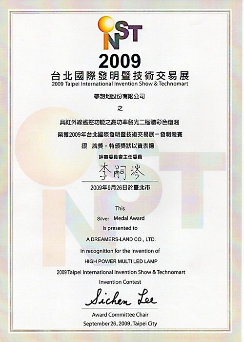 LED產業界唯一獲得國家級榮譽肯定的商品(2008,2009年國際發明競賽銀,銅牌獎!)